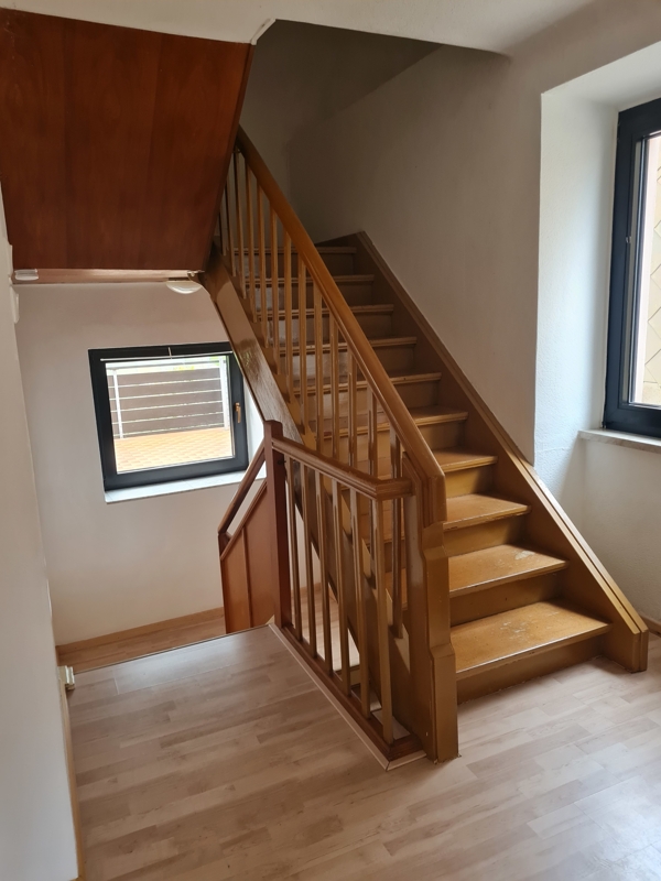 Die einzelnen Geschosse sind durch Flure über eine geschlossene Holztreppe miteinander verbunden. Die Aufteilung bietet auch einer Familie mit Kindern oder Eltern ausreichend Platz zum angenehmen Wohnen und Wohlfühlen.