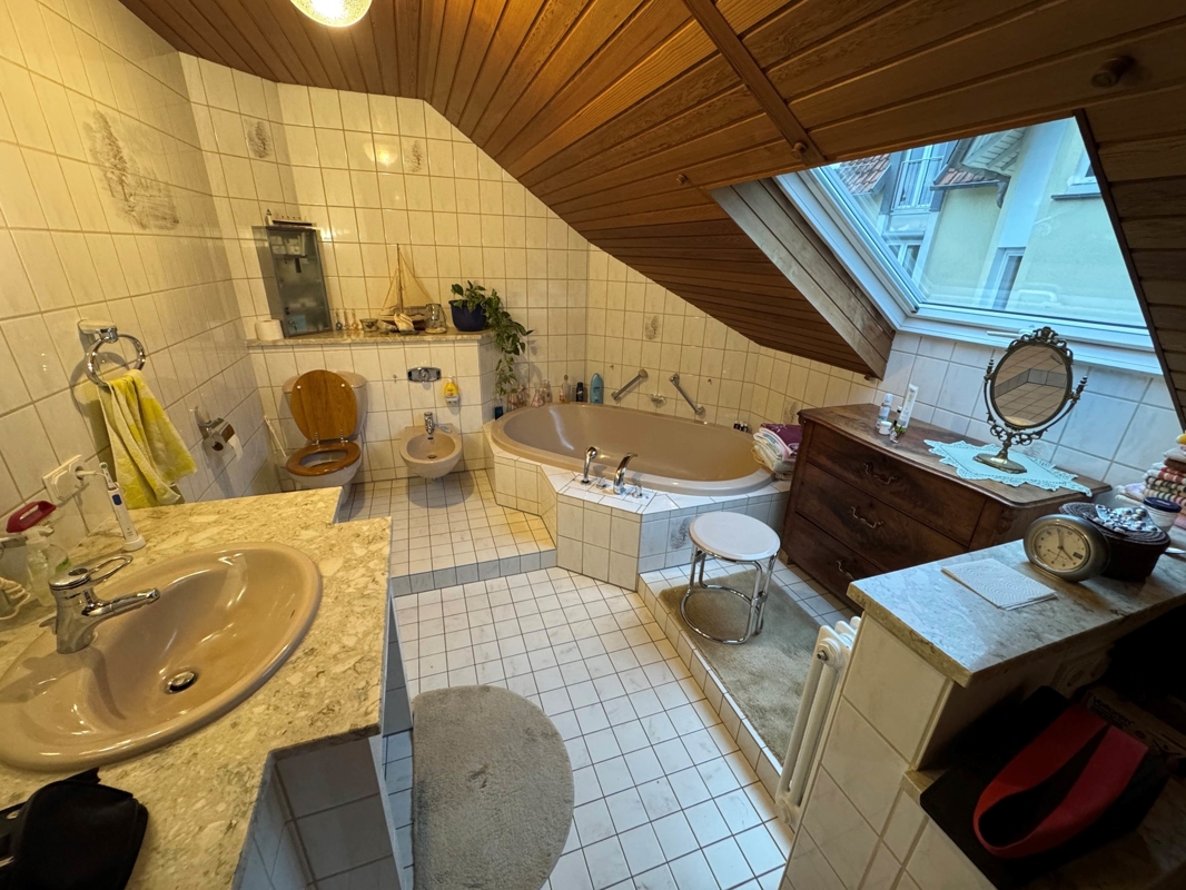 Das Haus verfügt über ein geräumiges Bad im Obergeschoss sowie ein praktisches Gäste-WC im Erdgeschoss, was besonders bei Besuchen oder für die alltägliche Nutzung Komfort bietet. Die Raumaufteilung ist durchdacht und bietet flexible Nutzungsmöglichkeiten für alle Lebensphasen.