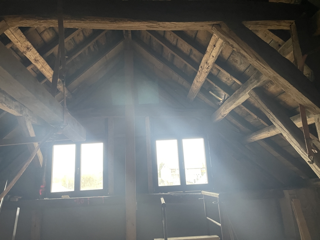 Die Scheune und der Stall wurden bereits abgerissen. Das Dachgeschoss ist nicht ausgebaut, könnte aber ausgebaut werden. (im Falle des Ausbaus/Statik prüfen).