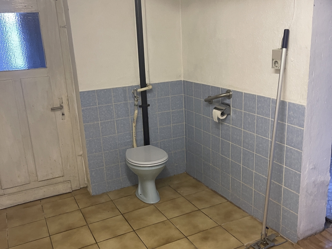 • Waschküche mit Toilette und Waschbecken