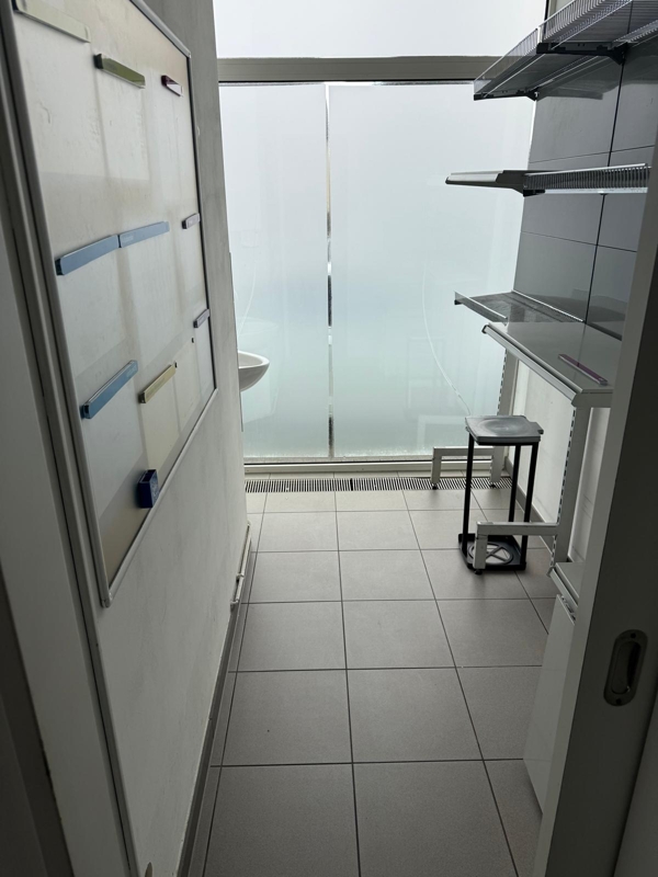 Ein kleiner Nebenraum mit Waschbecken eignet sich ideal als Vorbereitung, Lager oder Büro.