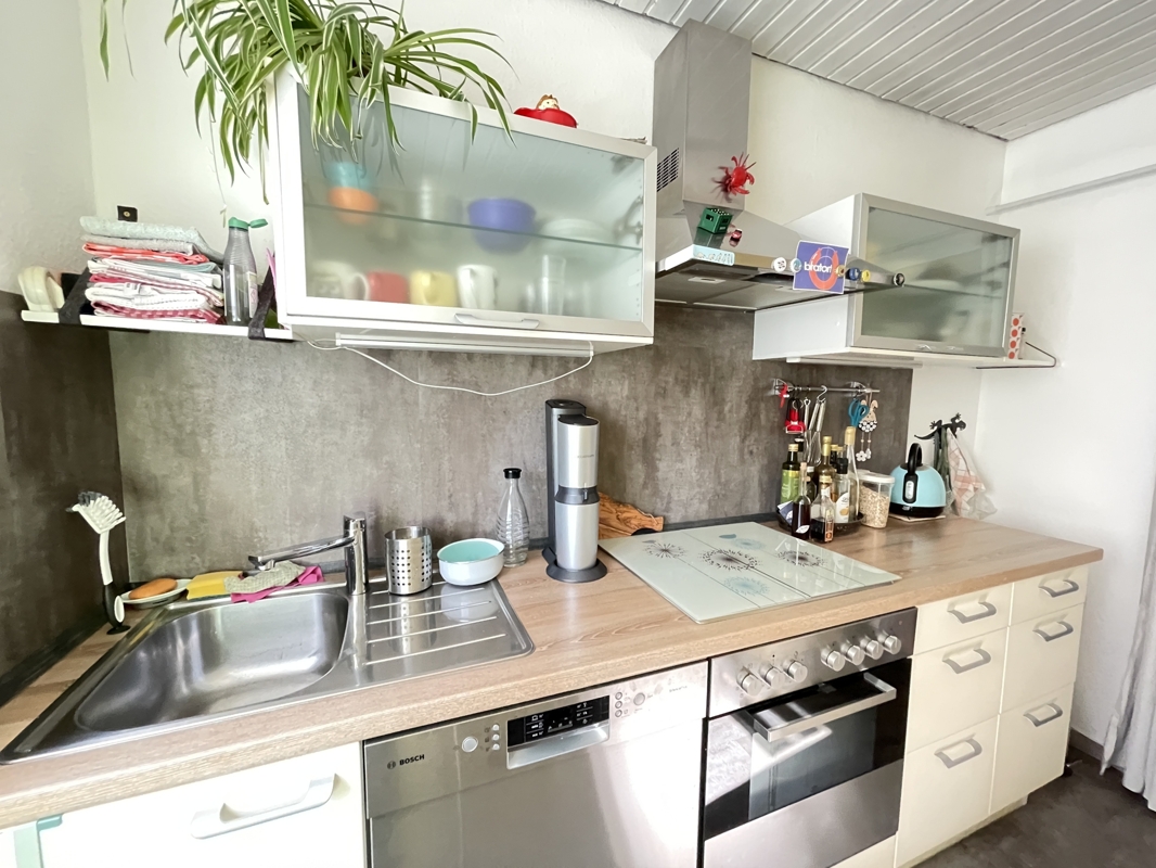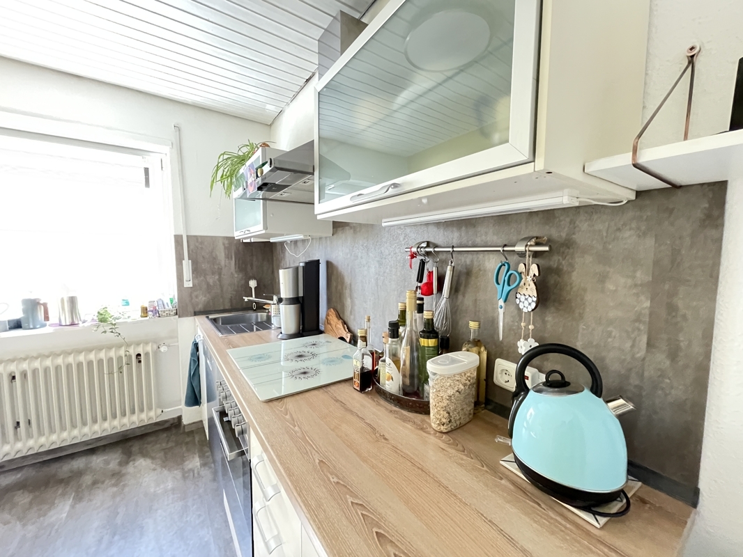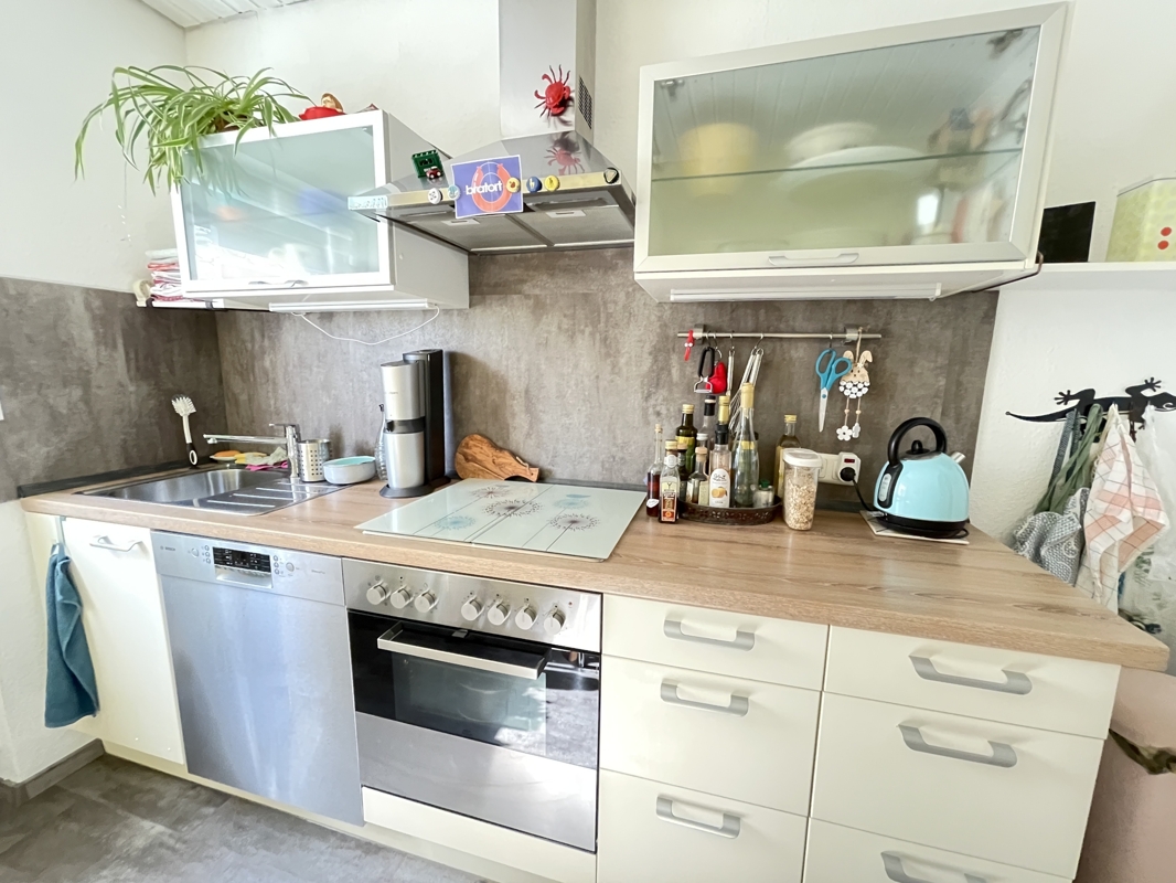 Die Wohnfläche von ca. 62 m² ist durchdacht und zweckmäßig aufgeteilt. Die kleine Diele wirkt einladend und vom Flur aus sind alle Zimmer erreichbar. Neben einem Schlafzimmer, dem Bad, der Küche und dem Wohnzimmer gibt es noch ein kleineres Zimmer, das hervorragend als Arbeitszimmer oder als kleines Gästezimmer eingerichtet werden kann. Dem Wohnbereich ist ein überdachter Balkon vorgelagert, von dem aus man einen herrlichen Blick auf das rückwärtige Grundstück und auf jede Menge GRÜN hat. Das Grundstück hinter dem Haus kann, in Absprache mit den Vermietern, gerne von den Bewohner des Hauses genutzt werden.Die Wohnung ist derzeit noch bewohnt und ab dem 01.12.2025 frei. Die vorhandene Einbauküche (OHNE Kühlschrank) gehört den Vermietern und wird dem zukünftigen Mieter zur Nutzung überlassen. Die derzeitige Mieterin bietet, falls gewünscht, ihren Kühlschrank, gegen eine geringe Ablöse, zur Übernahme an. Dies gilt auch noch für weitere Kleinmöbel (Spiegelschrank, Badezimmerschränkchen, kleiner Küchentisch mit 2 Stühlen, Schuhschrank mit Spiegelfront) und einen neuwertigen + geräumigen Schlafzimmer-Eckschrank).