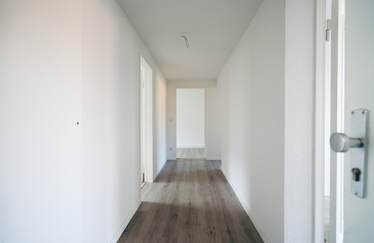 Ein Flur teilt die Wohnung zentral und Sie haben keine Durchgangszimmer.