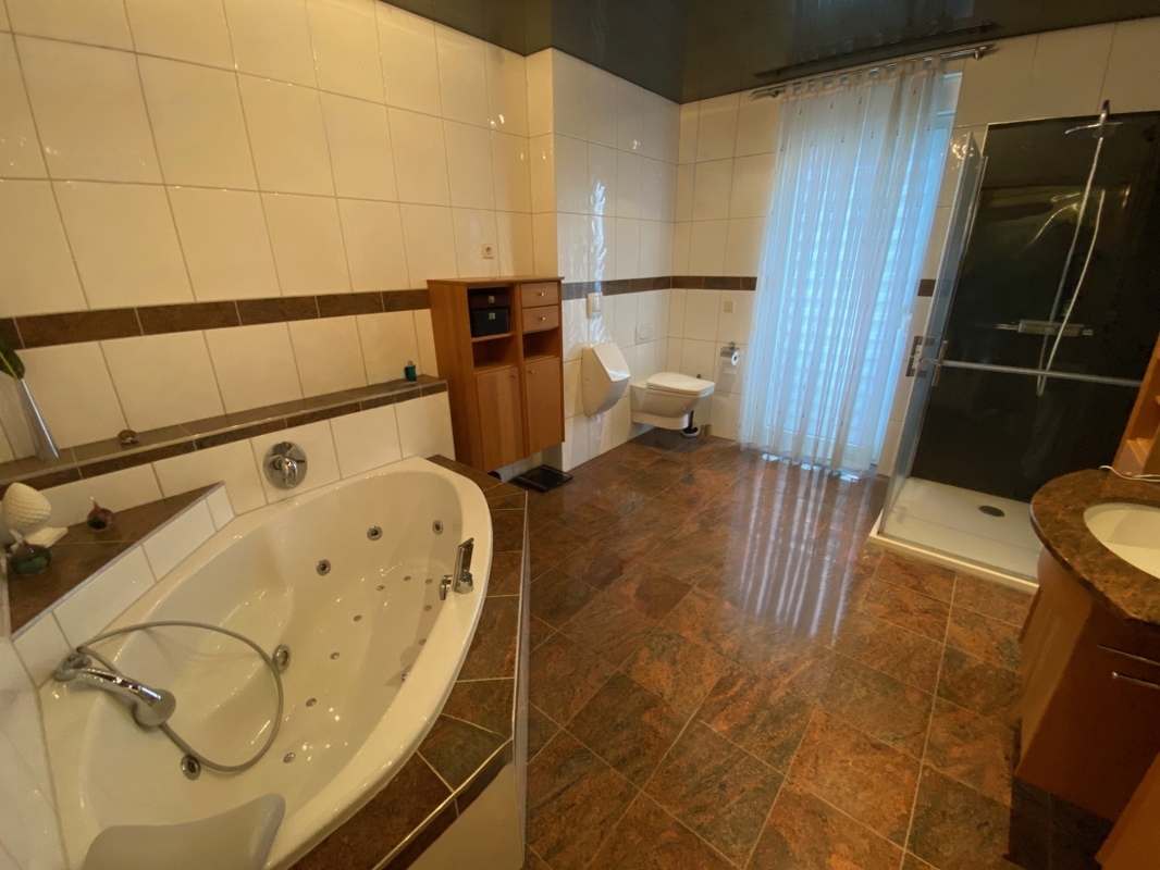 Ein besonderes Highlight ist die Badeoase zum Träumen: eine elegante Kombination aus Badewanne, und Dusche in stilvollen Materialien und liebevollen Details –