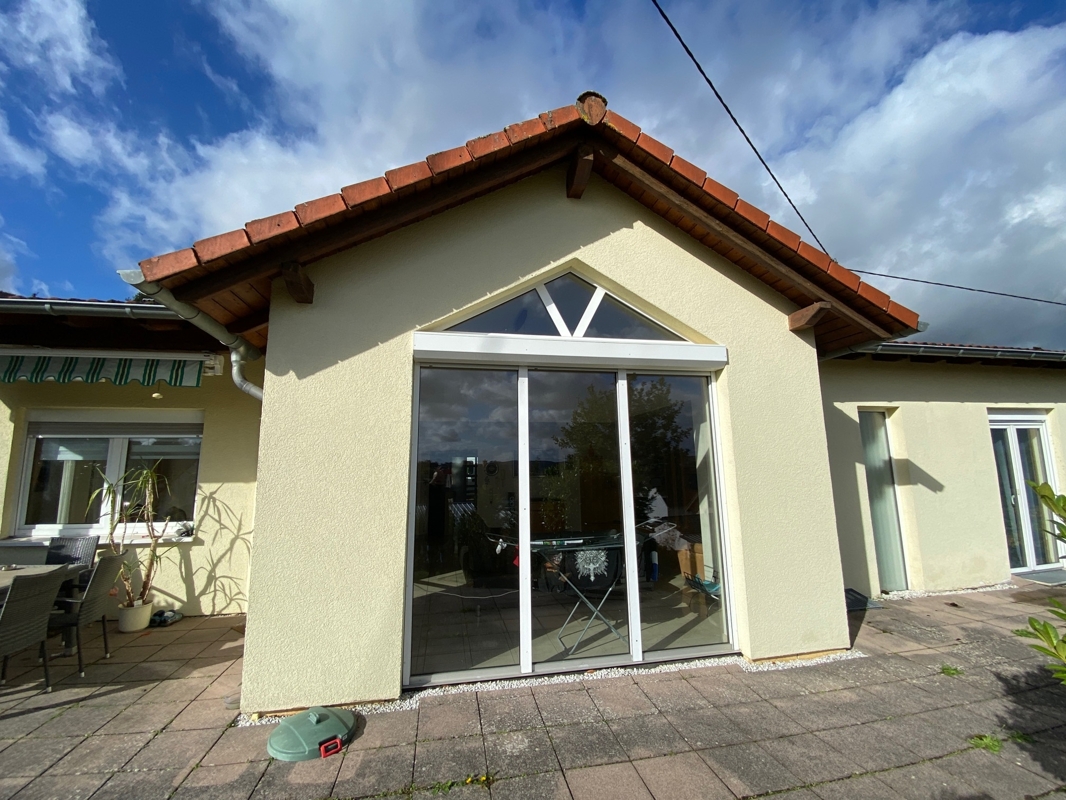 Hohe Fensterelemente sorgen hier für ein helles, freundliches Ambiente und eröffnen den Blick ins Grüne.