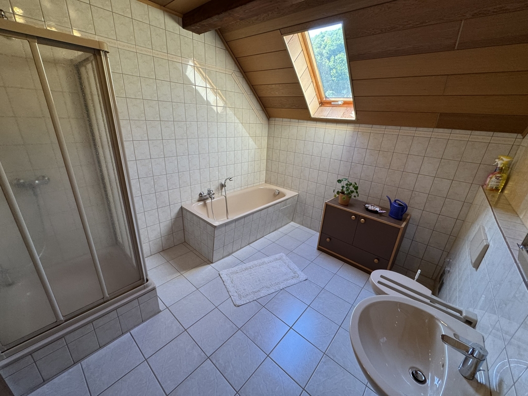 Auch technisch wurde das Haus kontinuierlich modernisiert: Die Ölheizung wurde 2023 erneuert, befindet sich noch in der Garantiezeit und versorgt das gesamte Gebäude zuverlässig über einen 4.000-Liter-Tank. Die meisten Fenster wurden zwischen 2012 und 2015 ausgetauscht und sorgen für gute Energieeffizienz. Das Dach ist mit Steinwolle gedämmt, und an der Frontseite sind moderne 3-Kammer-Rollläden verbaut. Ein weiteres Zeichen für die Pflege und Werterhaltung der Immobilie. Zudem liegt Glasfaser bereits in der Straße, sodass einer modernen Internetanbindung nichts im Wege steht.